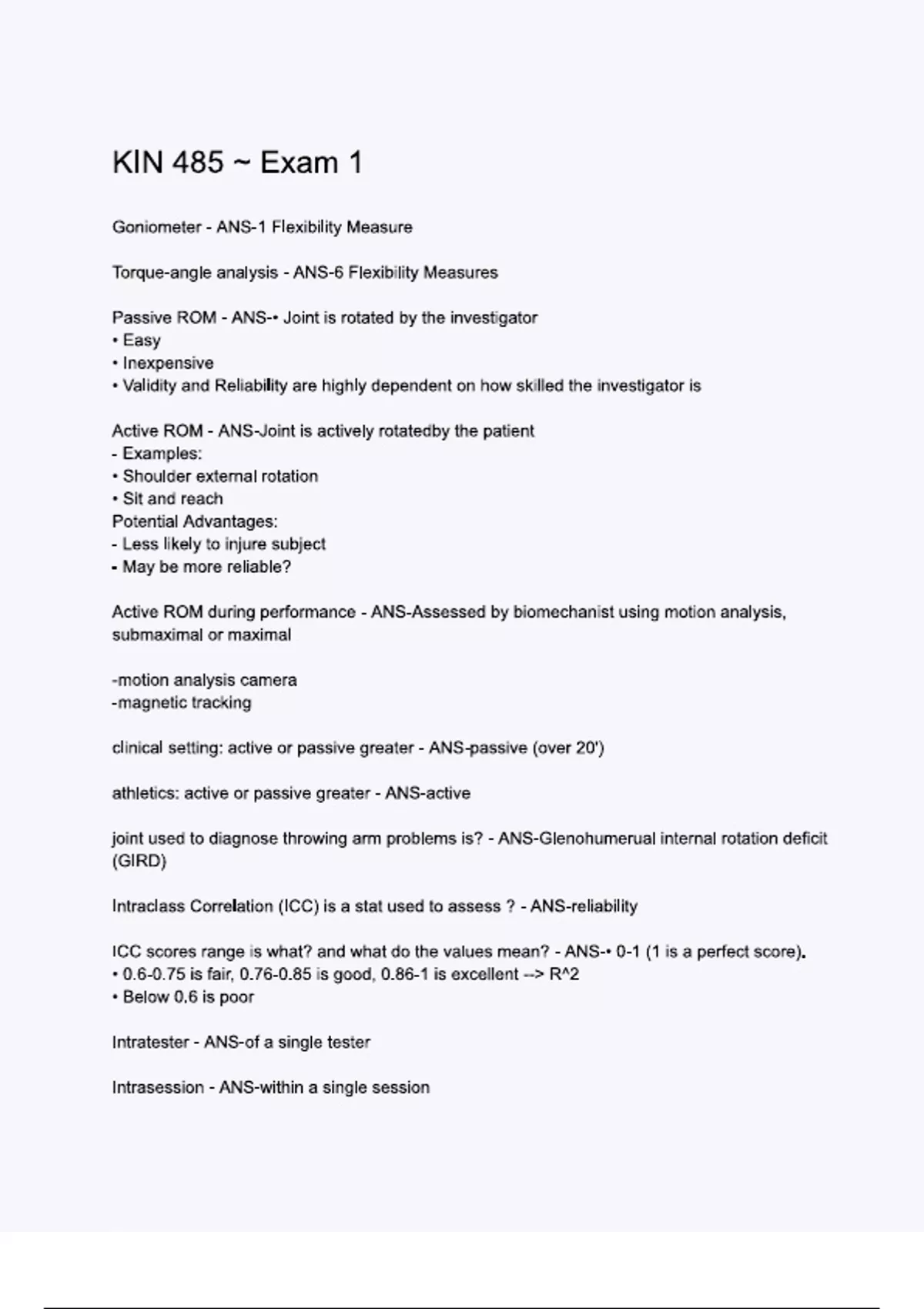 KIN 485 - Exam 1.