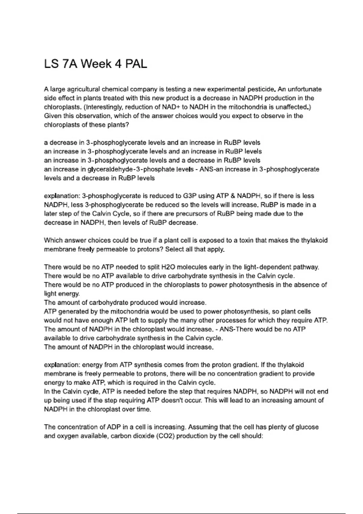 Exam of 4 pages for the course LS 7A at LS 7A (LS 7A Week 4 PAL.)