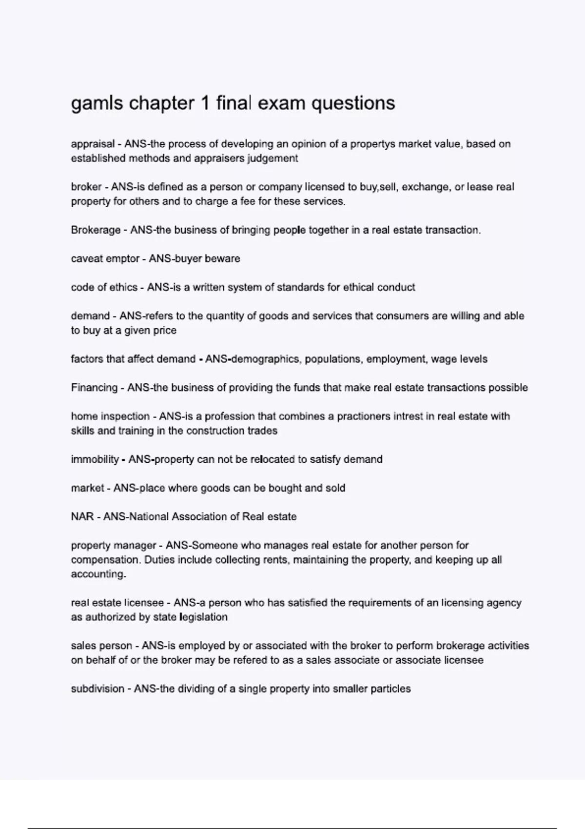 gamls chapter 1 final exam questions.