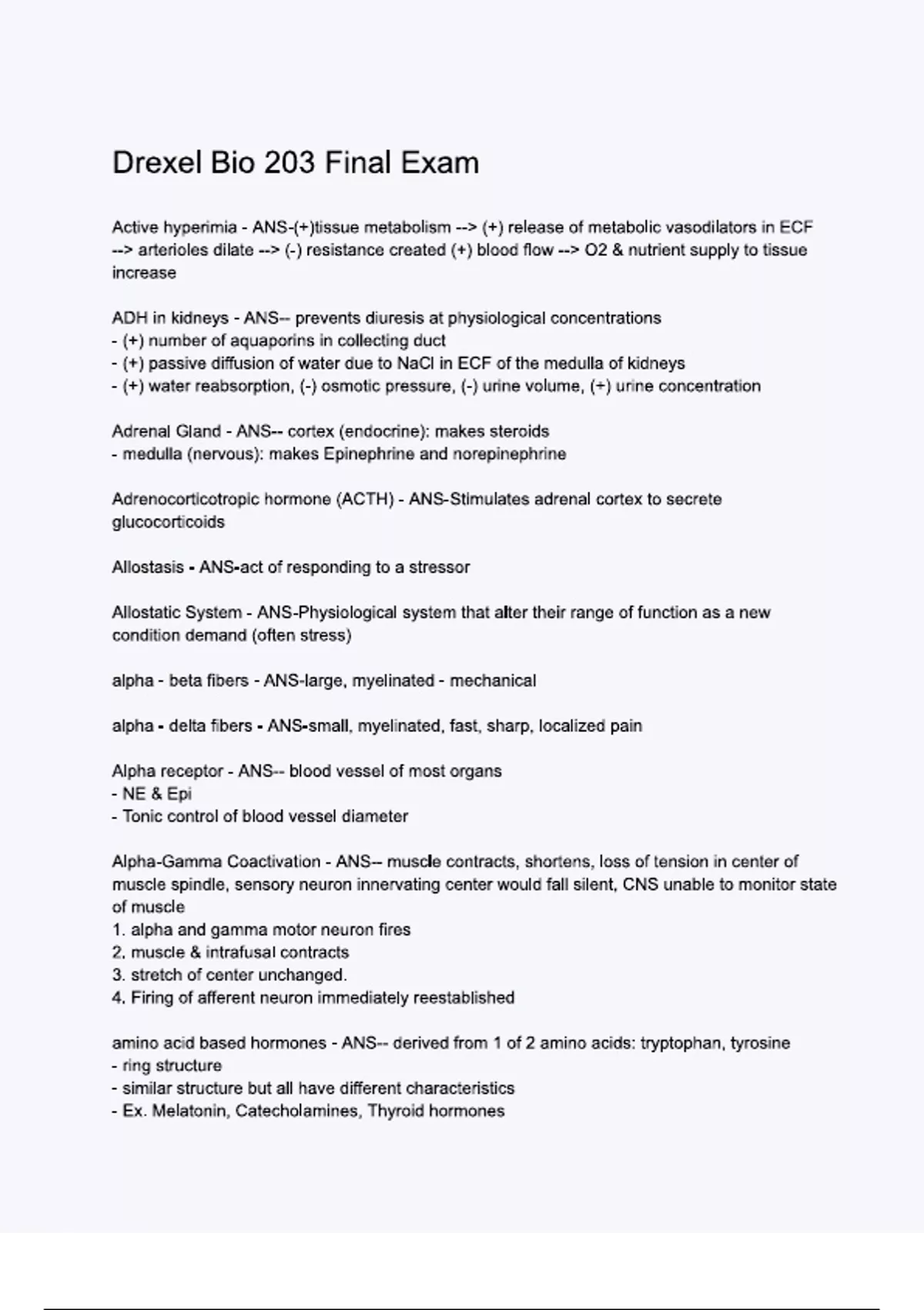 Drexel Bio 203 Final Exam.
