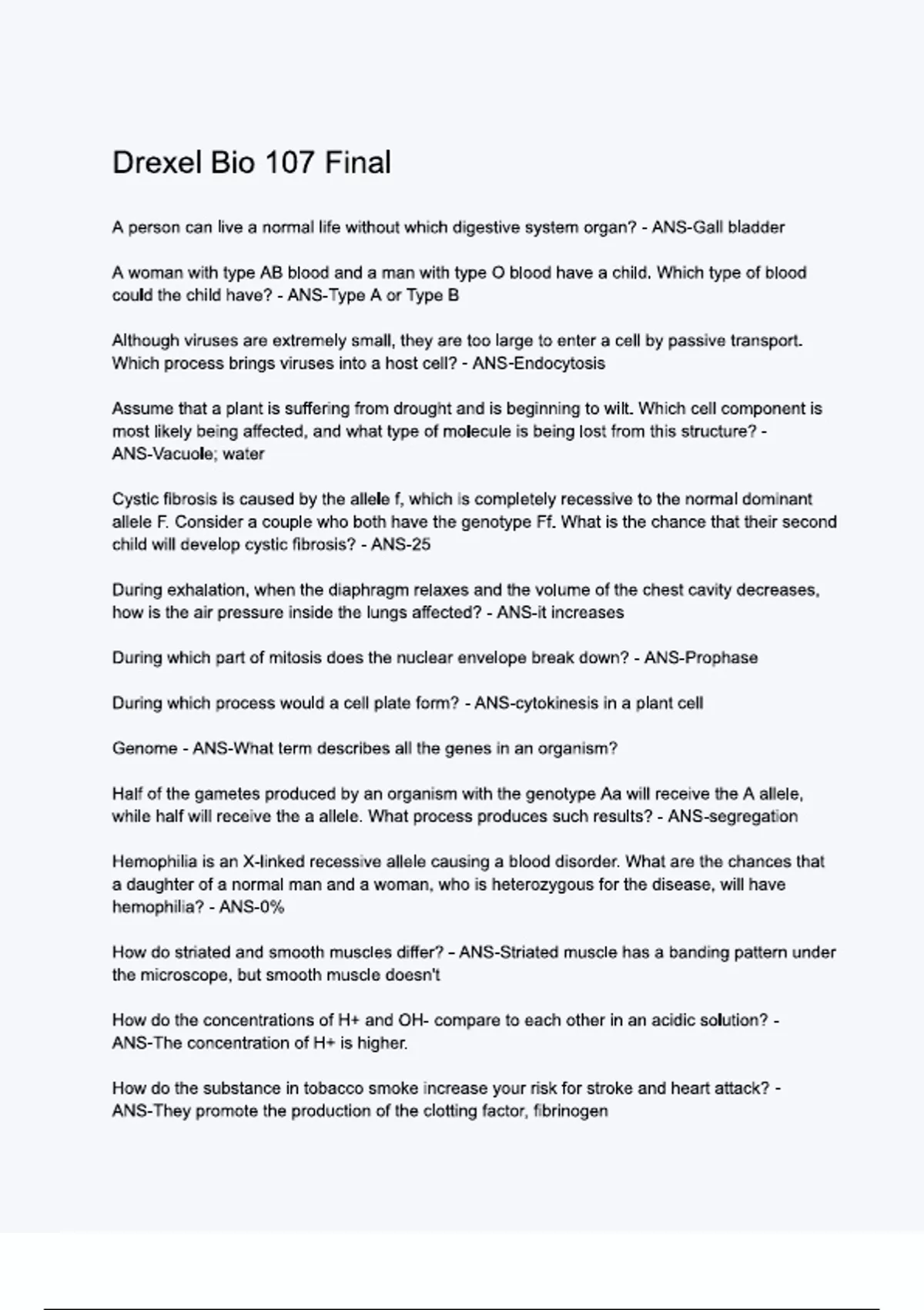 Drexel Bio 107 Final