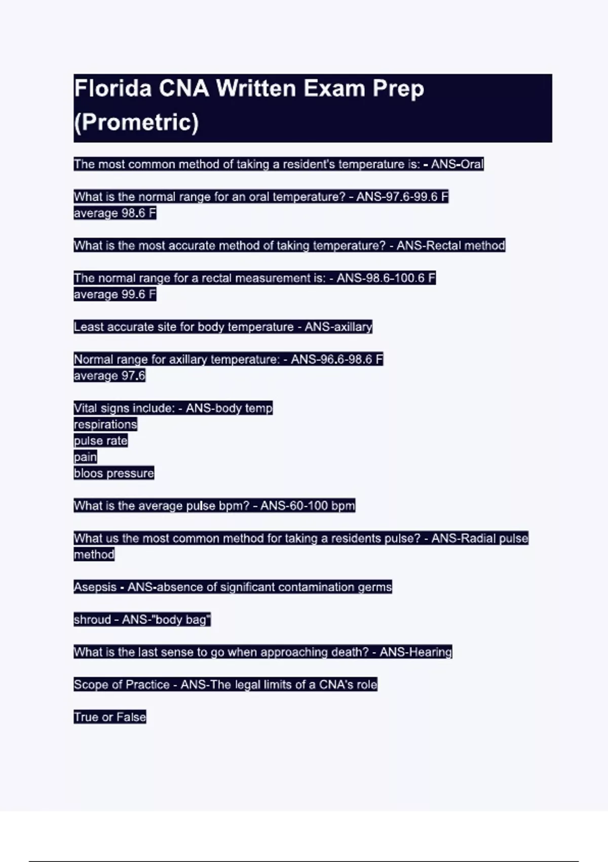 florida cna written exam prep