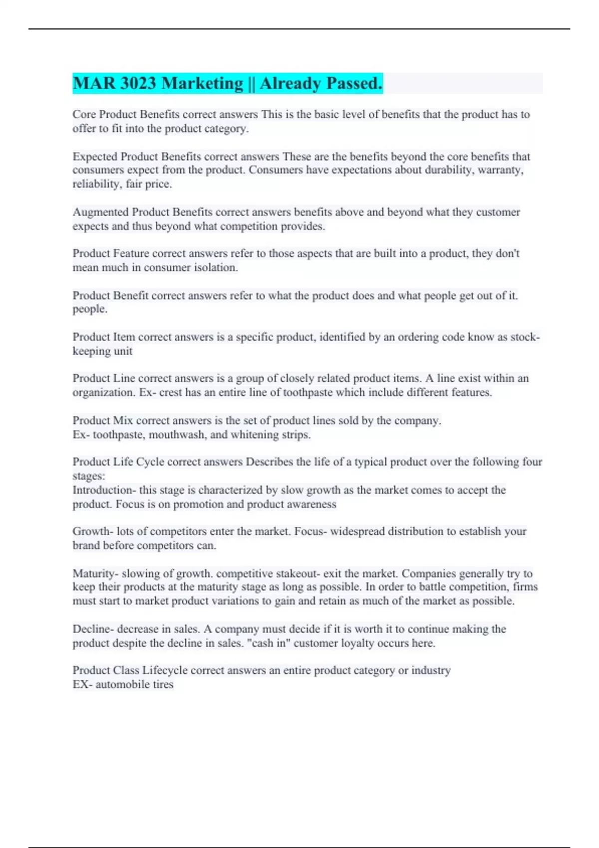 , Product Form Life Cycle correct answers within in the class. This typically is not under the