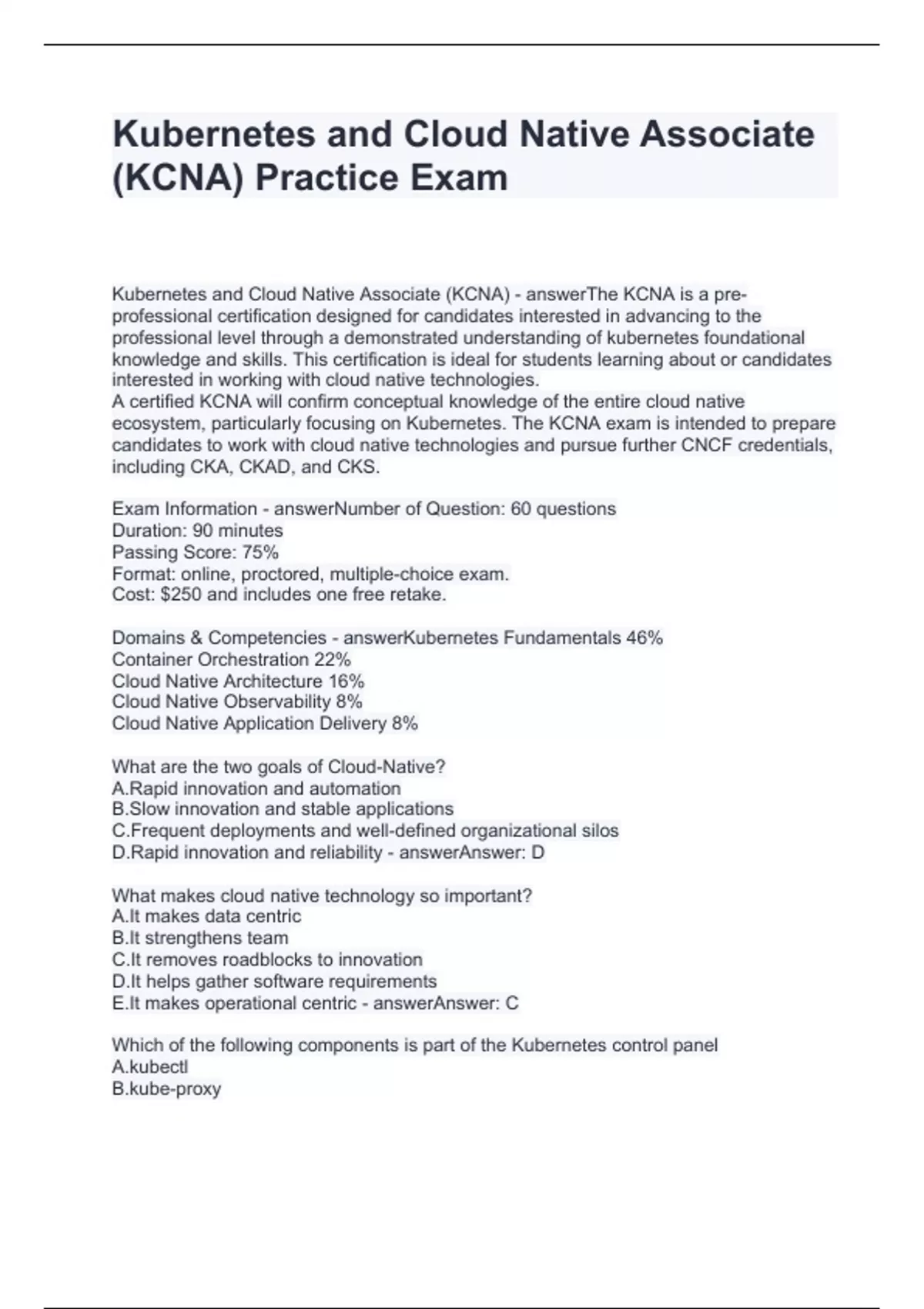 Kubernetes and Cloud Native Associate (KCNA) - answerThe KCNA is a pre-