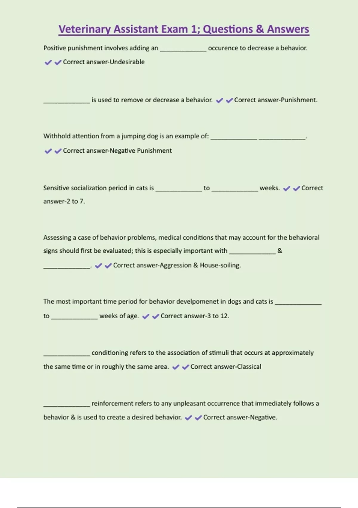 , Veterinary Assistant Exam 1; Questions & Answers