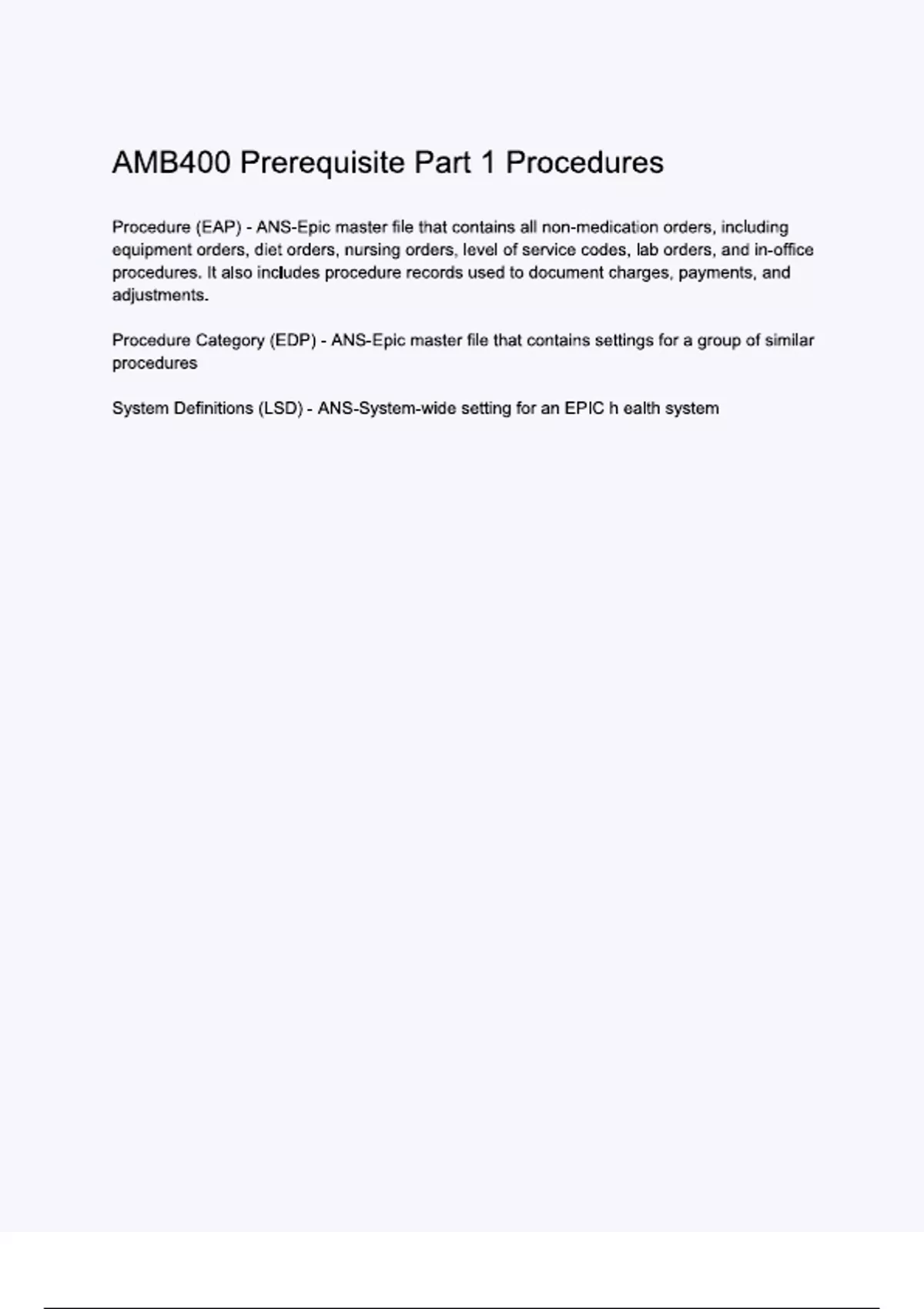AMB400 Prerequisite Part 1 Procedures