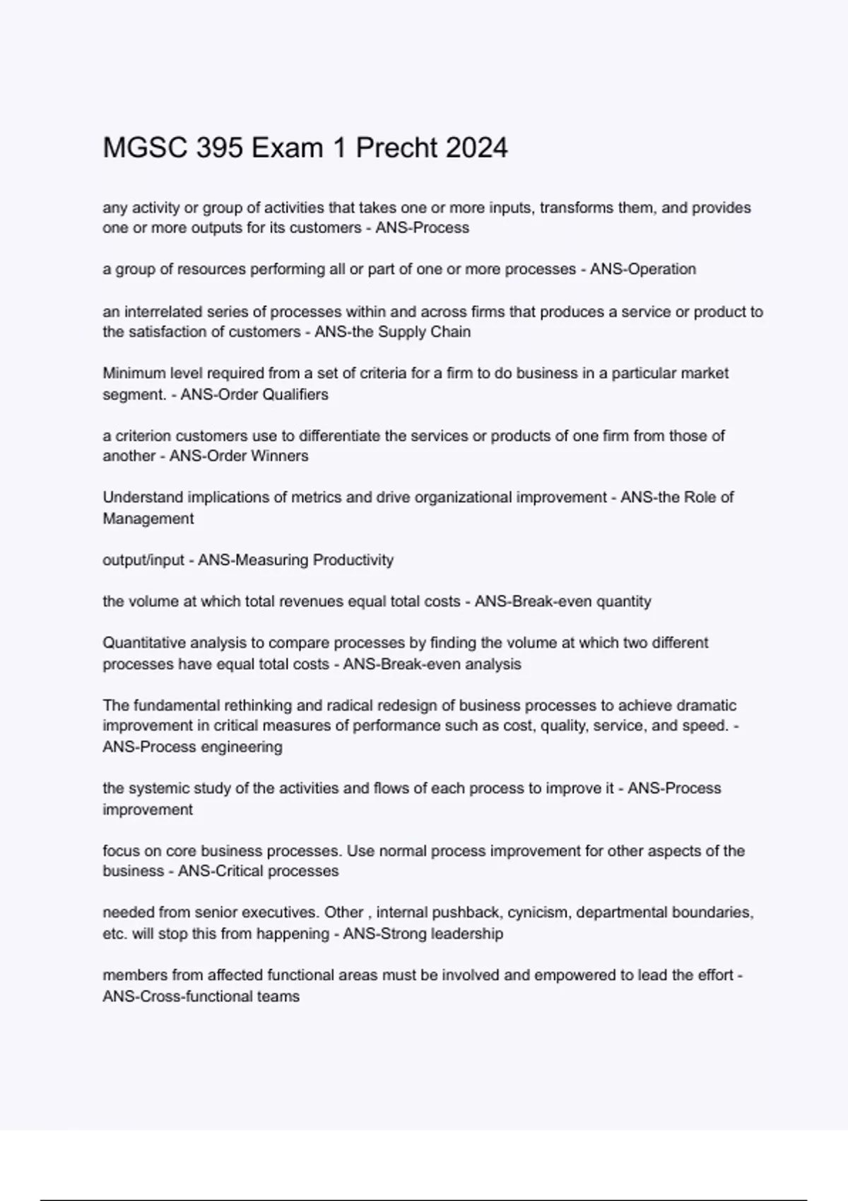 MGSC 395 Exam 1 Precht 2024