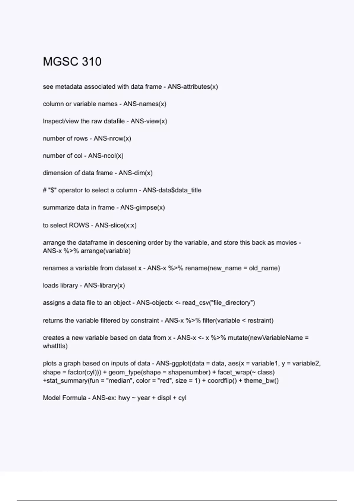 Exam of 1 pages for the course MGSC at MGSC (MGSC 310 (1)