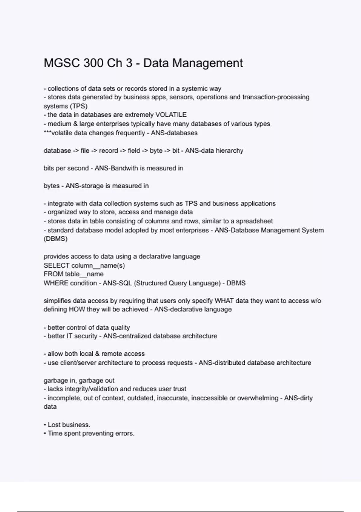 MGSC 300 Ch 3 - Data Management