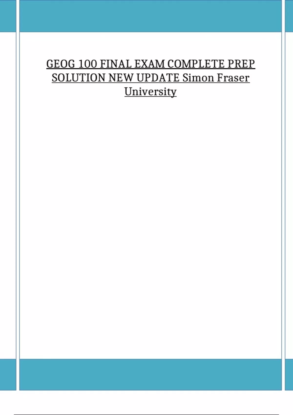 , GEOG 100 FINAL EXAM COMPLETE PREP SOLUTION NEW UPDATE Simon Fraser University