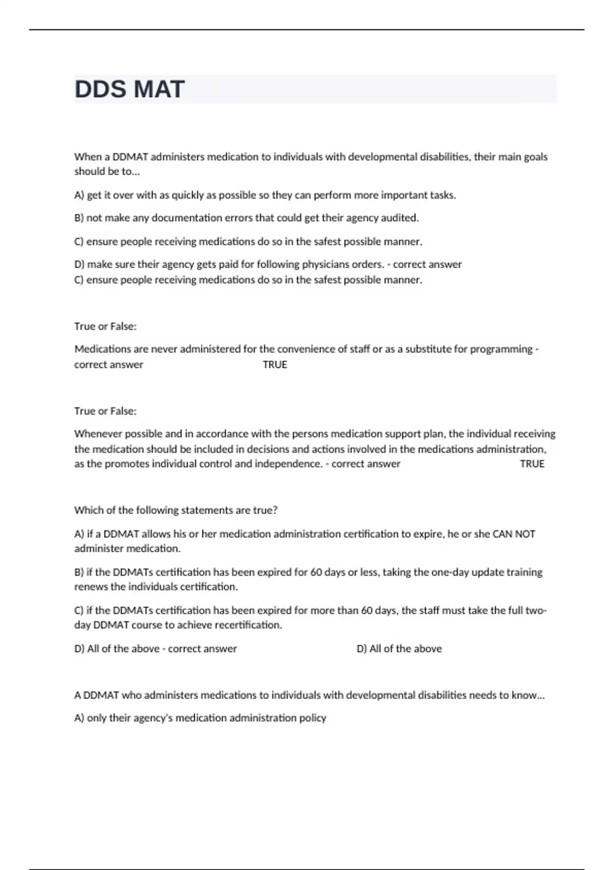 A DDMAT who administers medications to individuals with developmental disabilities needs to know...