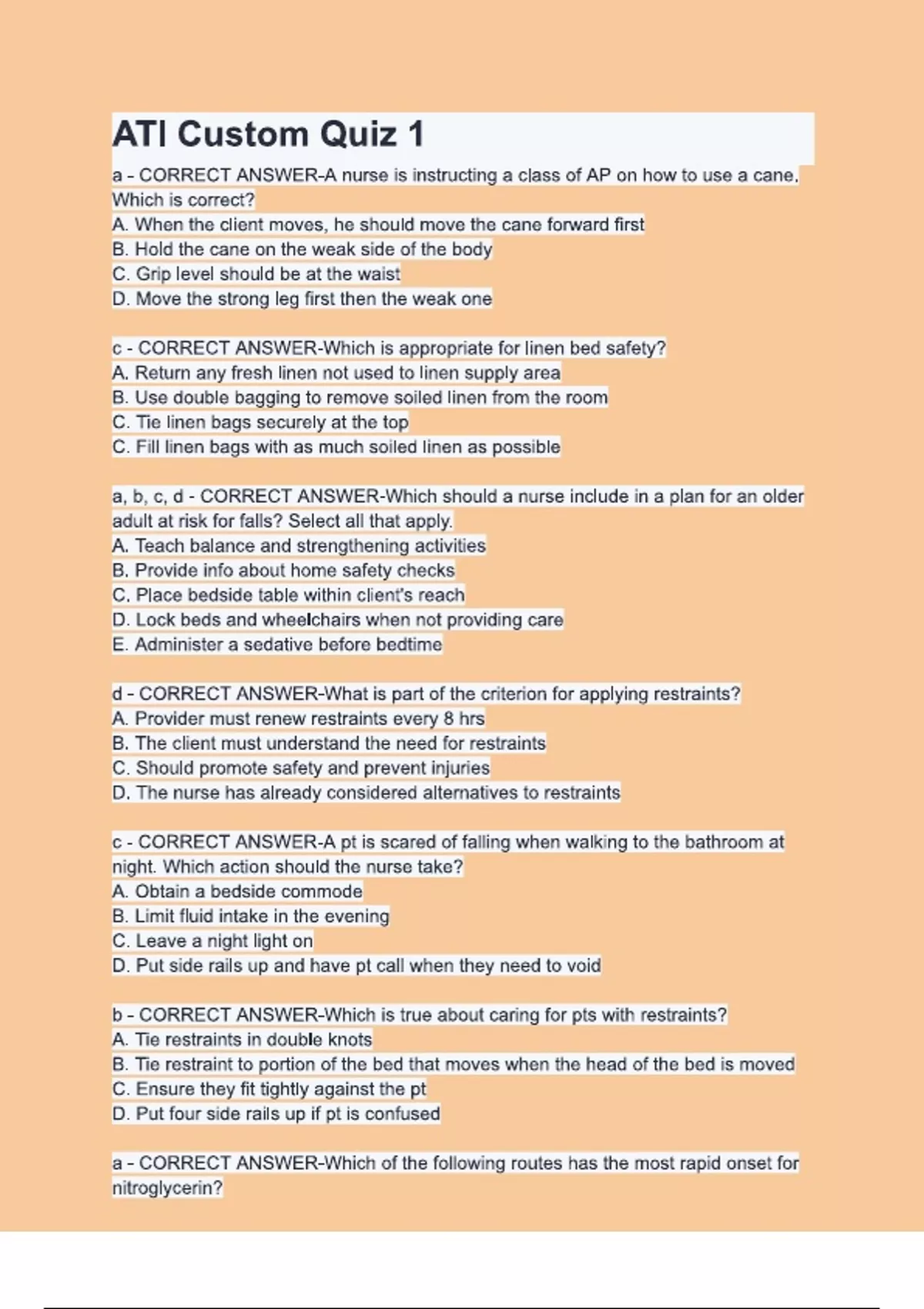 ATI Custom Quiz 1 Questions & 100% Verified Correct Answers with complete solutions (Latest update