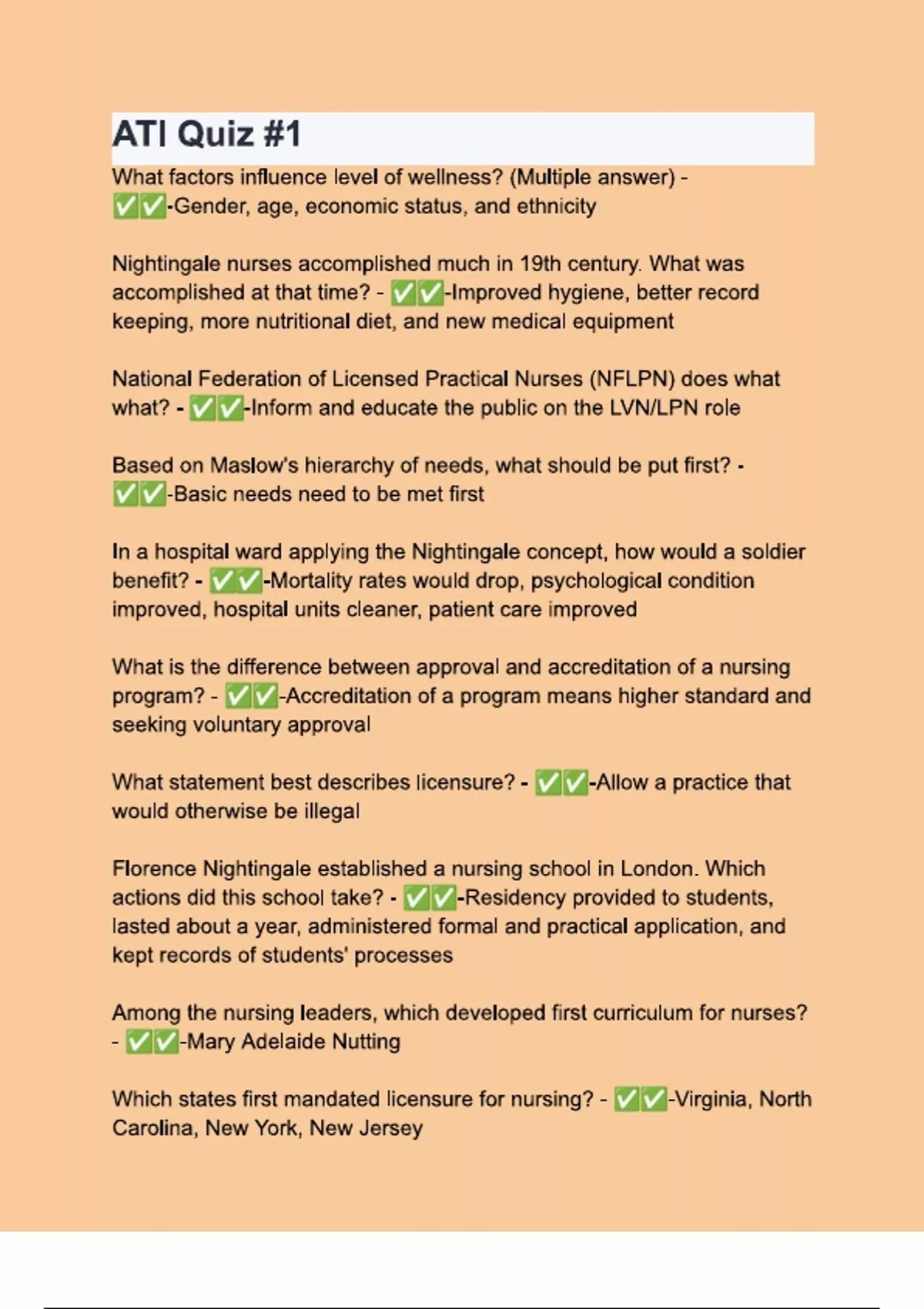 ATI Quiz -1. Questions & 100% Verified Correct Answers with complete solutions (Latest update