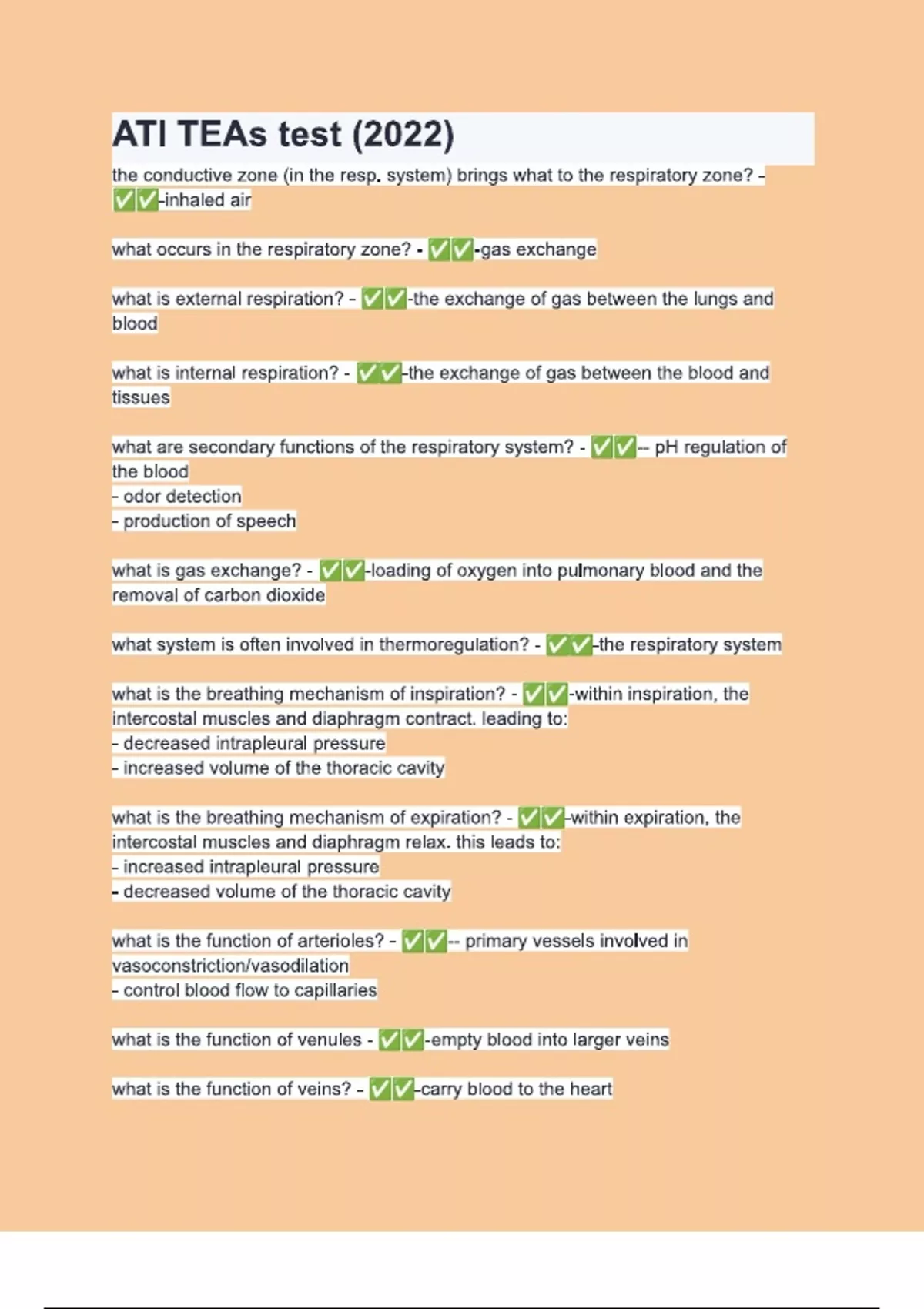 ATI TEAs test (2022) Questions & 100% Verified Correct Answers with complete solutions (Latest update