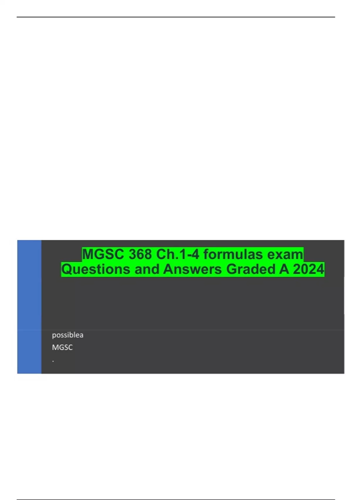 MGSC 368 Ch.1-4 formulas exam Questions and Answers Graded A 2024