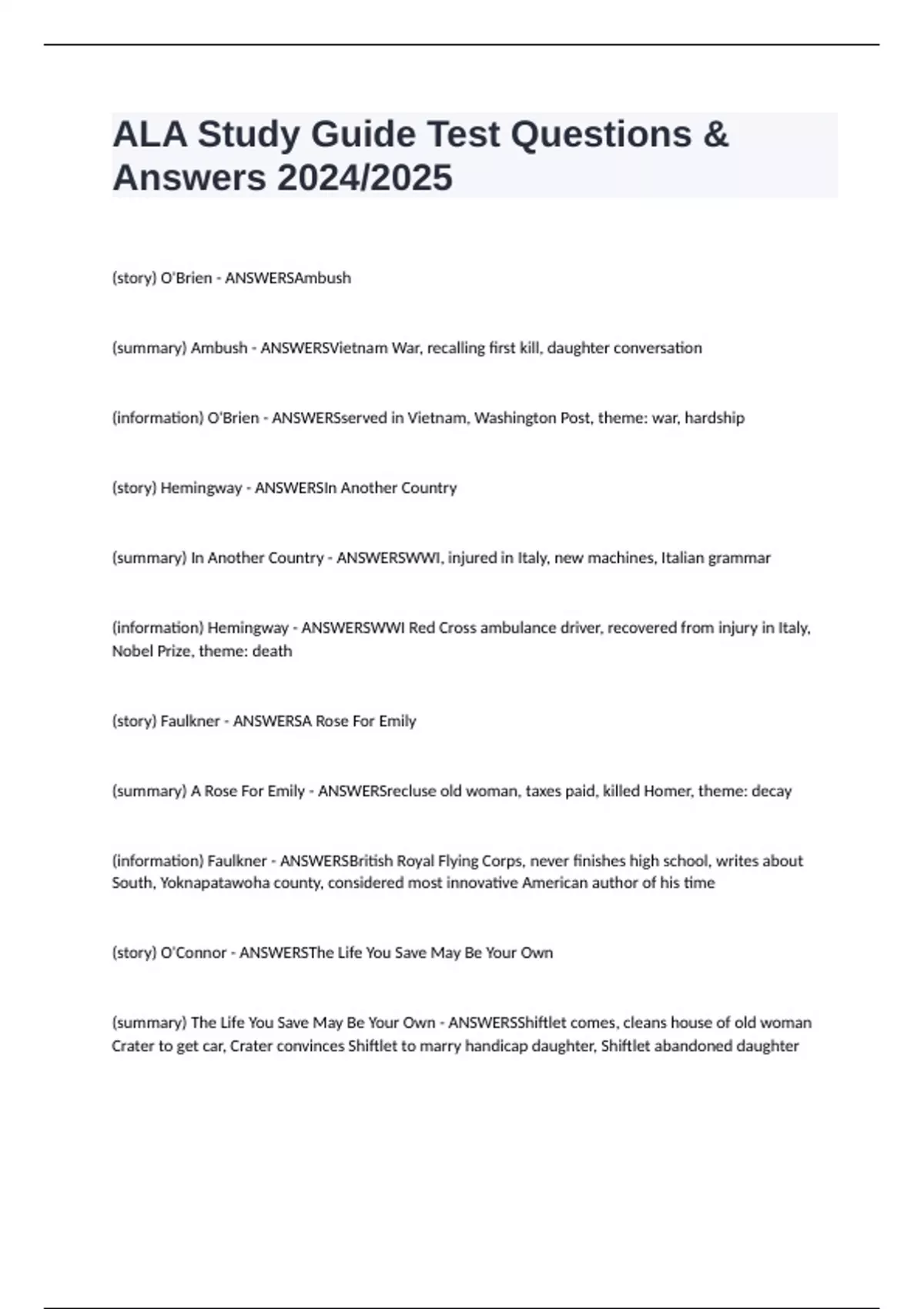(summary) Ambush - ANSWERSVietnam War, recalling first kill, daughter conversation