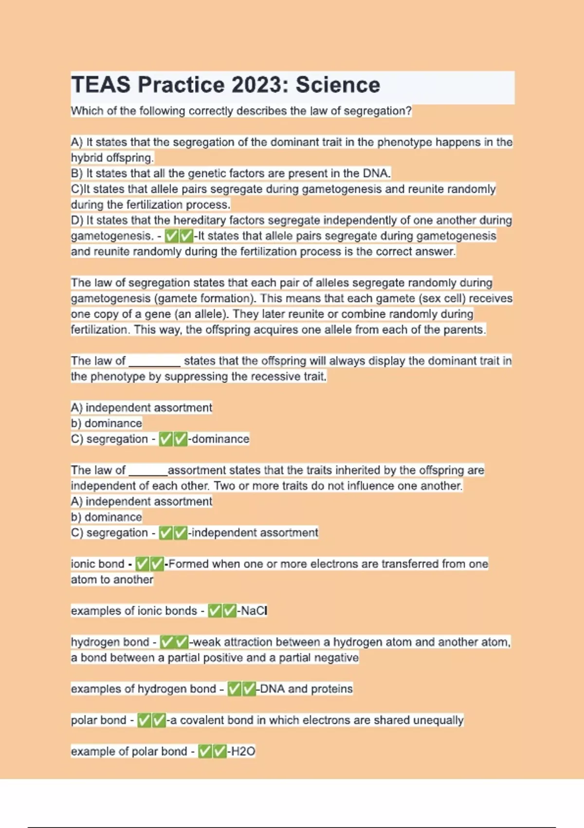 TEAS Practice 2023 Science. Questions & 100% Verified Correct Answers with complete solutions (Latest update
