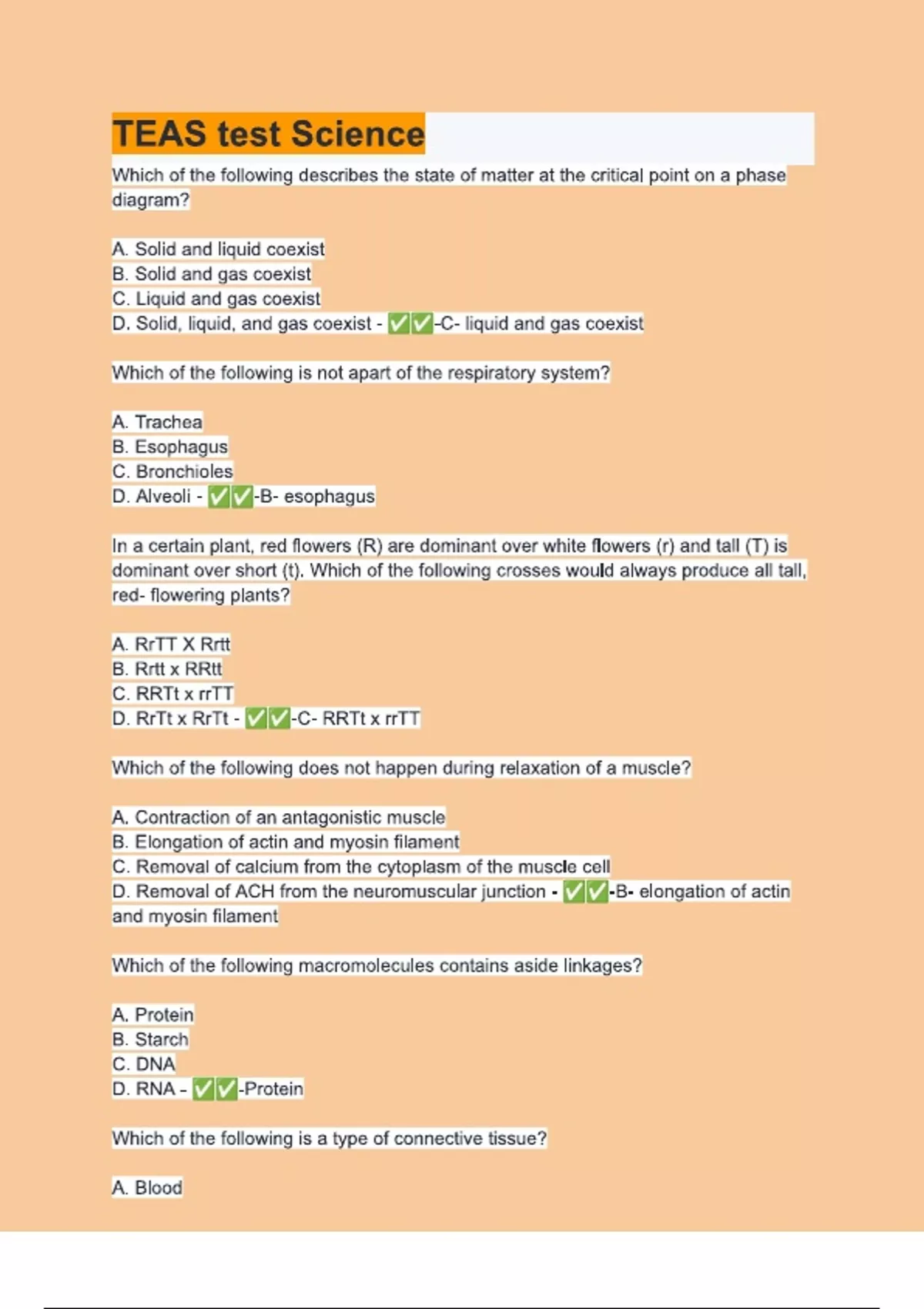 TEAS test Science Questions & 100% Verified Correct Answers with complete solutions (Latest update