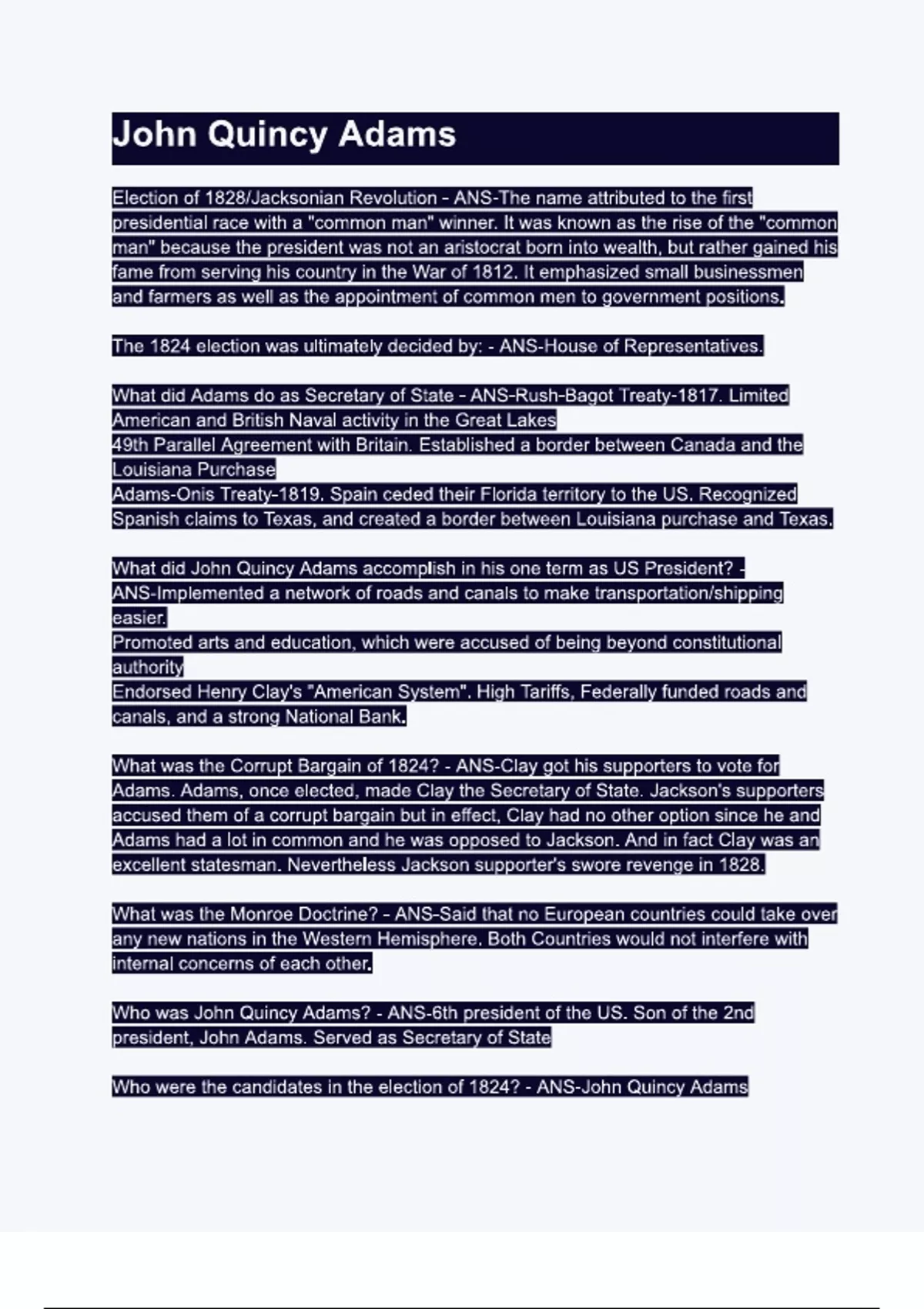 John Quincy Adams Questions & 100% Verified Correct Answers with complete solutions (Latest update