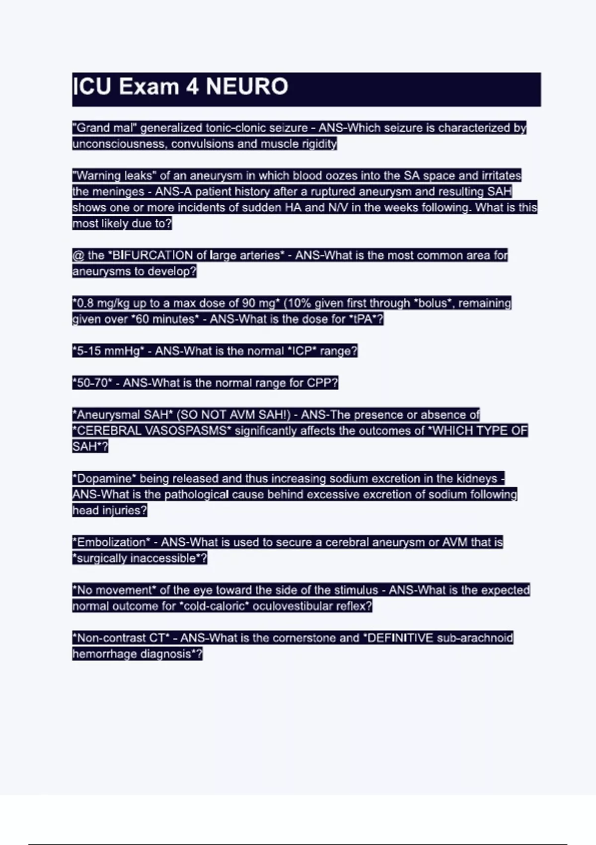 ICU Exam 4 NEURO. Questions & 100% Verified Correct Answers with complete solutions (Latest update