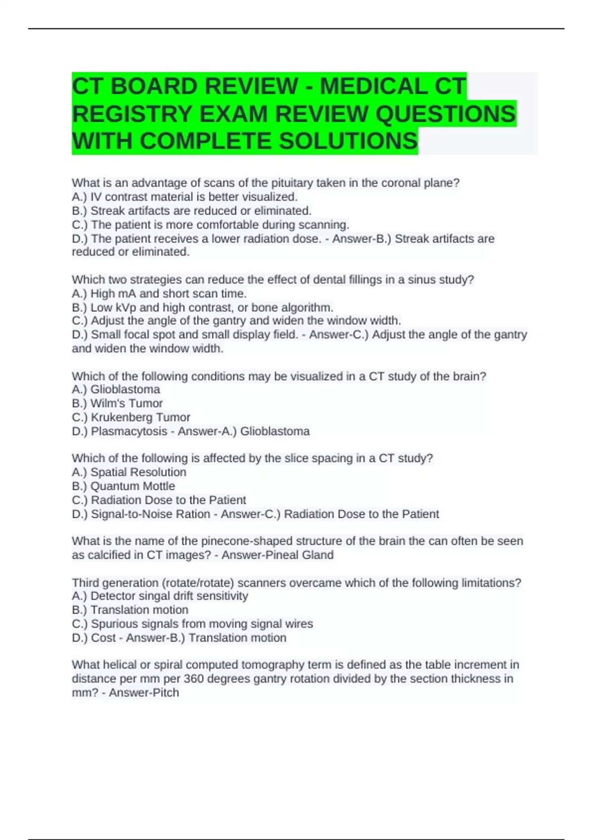 CT BOARD REVIEW - MEDICAL CT