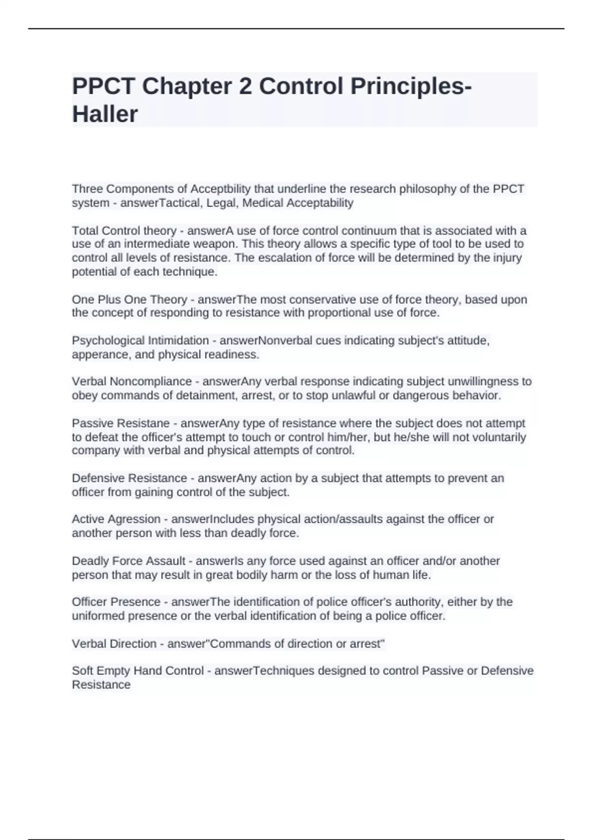 Defensive Resistance - answerAny action by a subject that attempts to prevent an