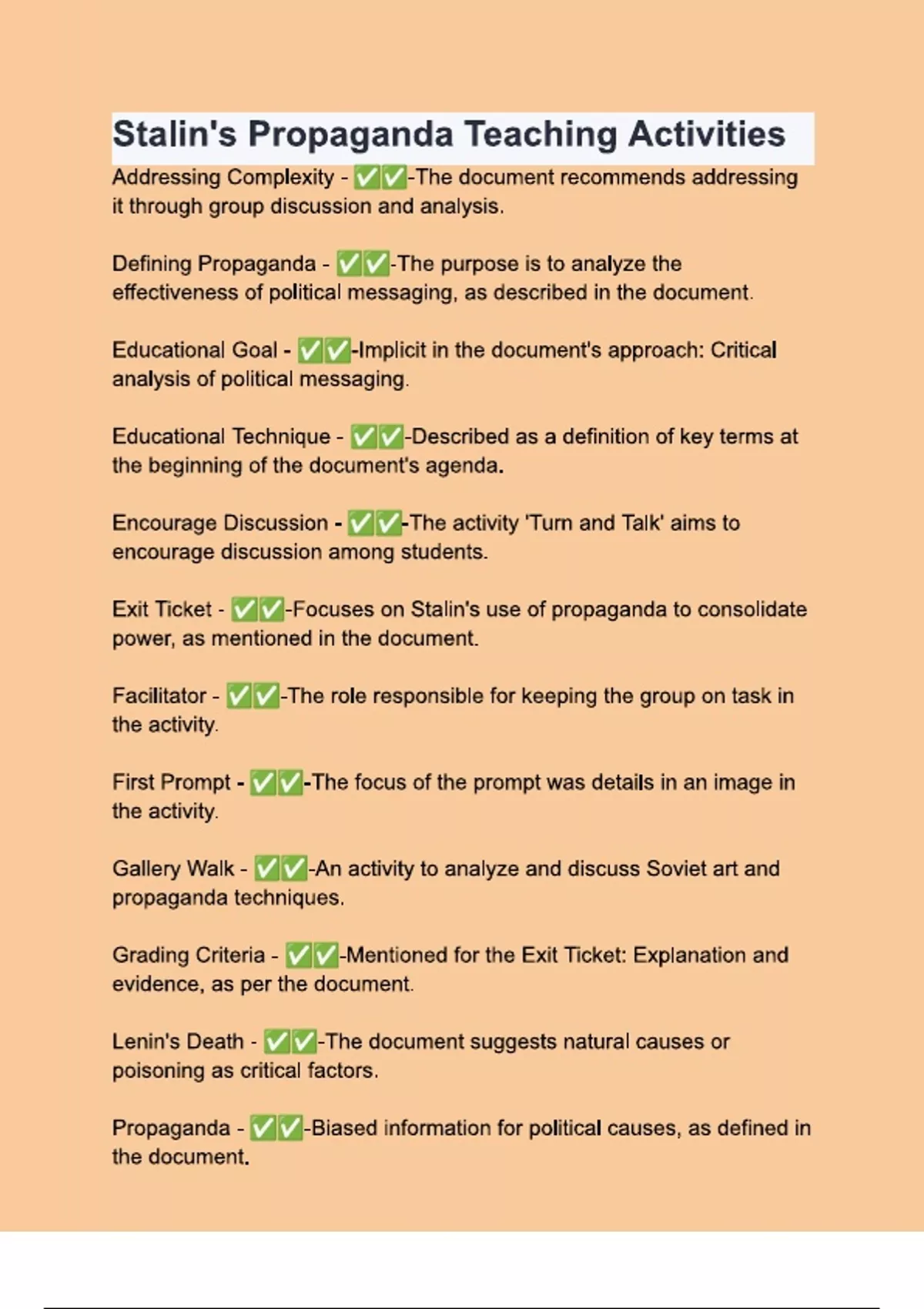 Stalin-s Propaganda Teaching Activities Questions & 100% Verified Correct Answers with complete solutions (Latest update