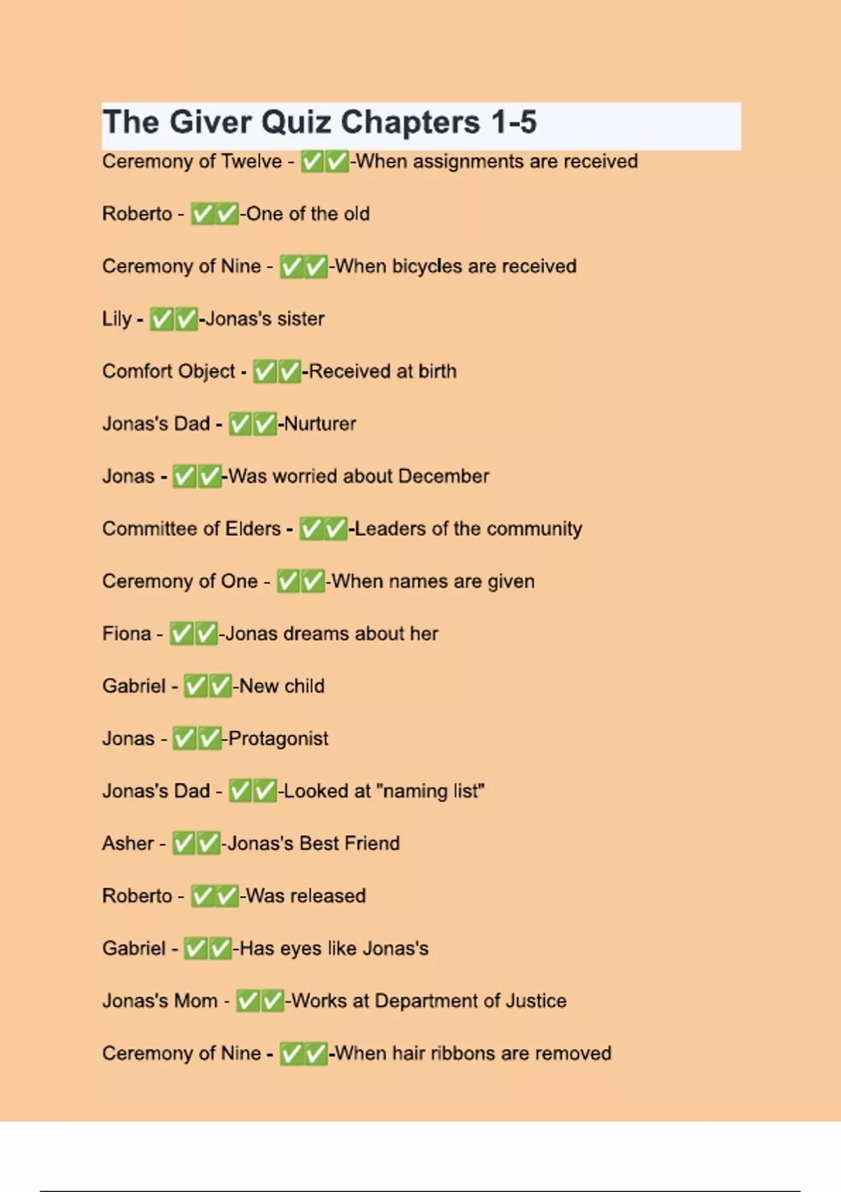 The Giver Quiz Chapters 1-5 Questions & 100% Verified Correct Answers with complete solutions (Latest update