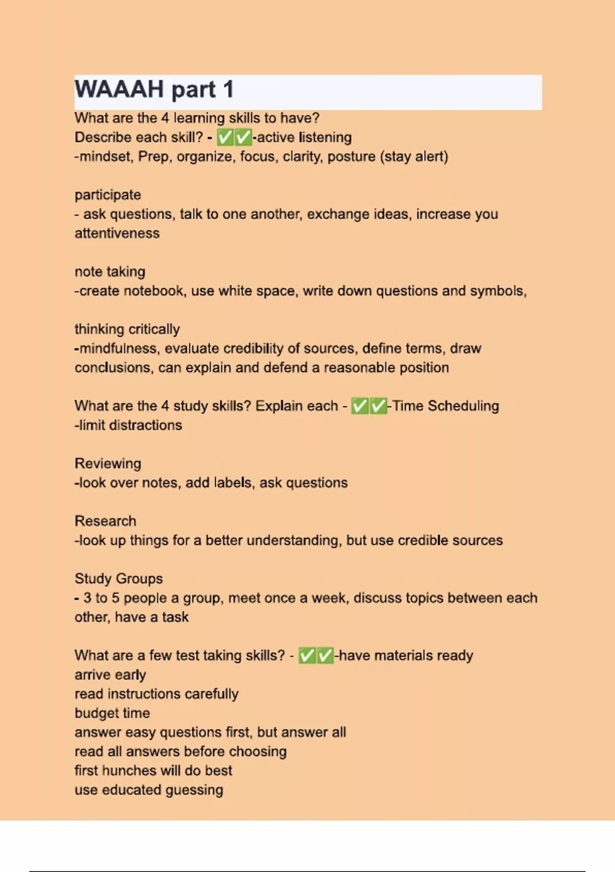 WAAAH part 1 Questions & 100% Verified Correct Answers with complete solutions (Latest update