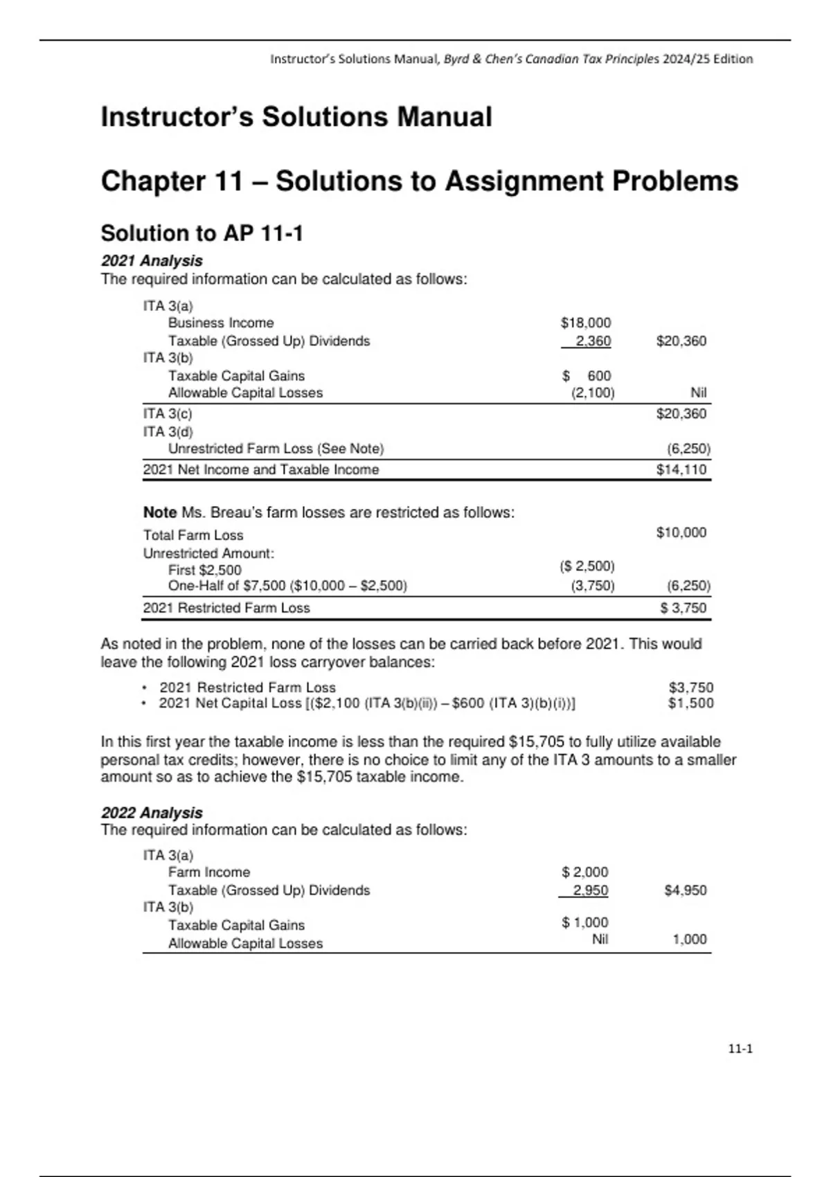 , Instructor’s Solutions Manual, Byrd & Chen’s Canadian Tax Principles 2024/25 Edition