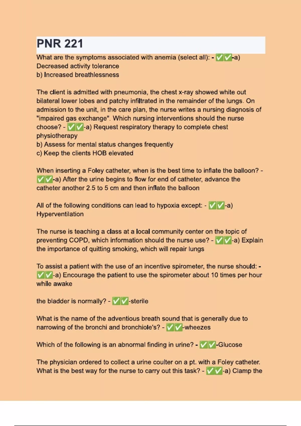 PNR 221 Questions & 100% Verified Correct Answers with complete solutions (Latest update
