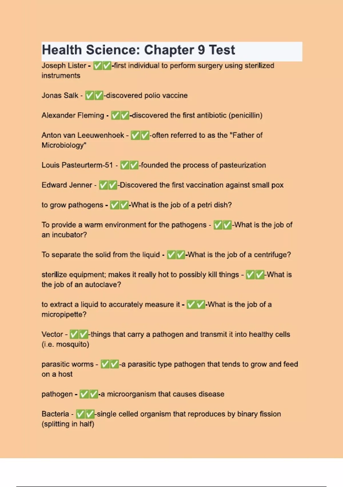 health science chapter 9 test