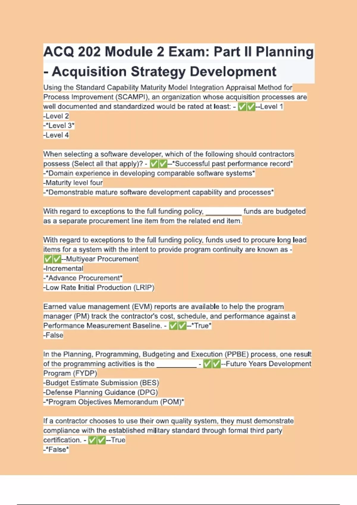 ACQ 202 Module 2 Exam Part II Planning - Acquisition Strategy Development test