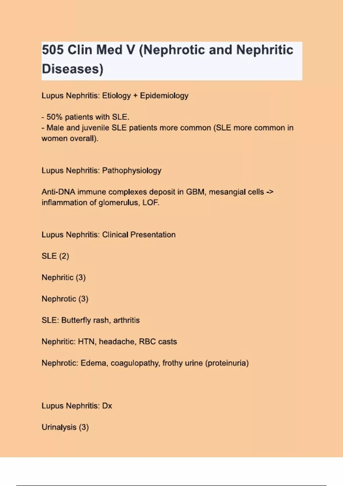 505 Clin Med V (Nephrotic and Nephritic Diseases
