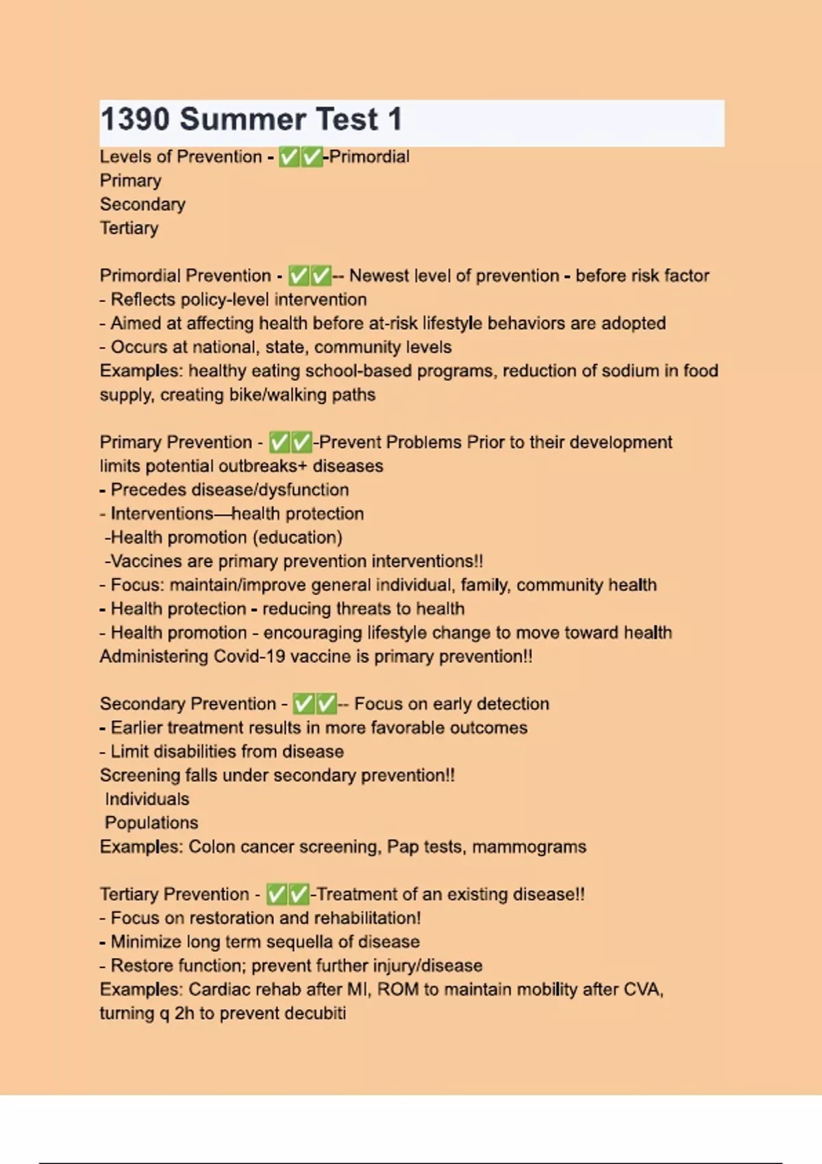 1390 Summer Test 1 Questions & 100% Verified Correct Answers with complete solutions (Latest update