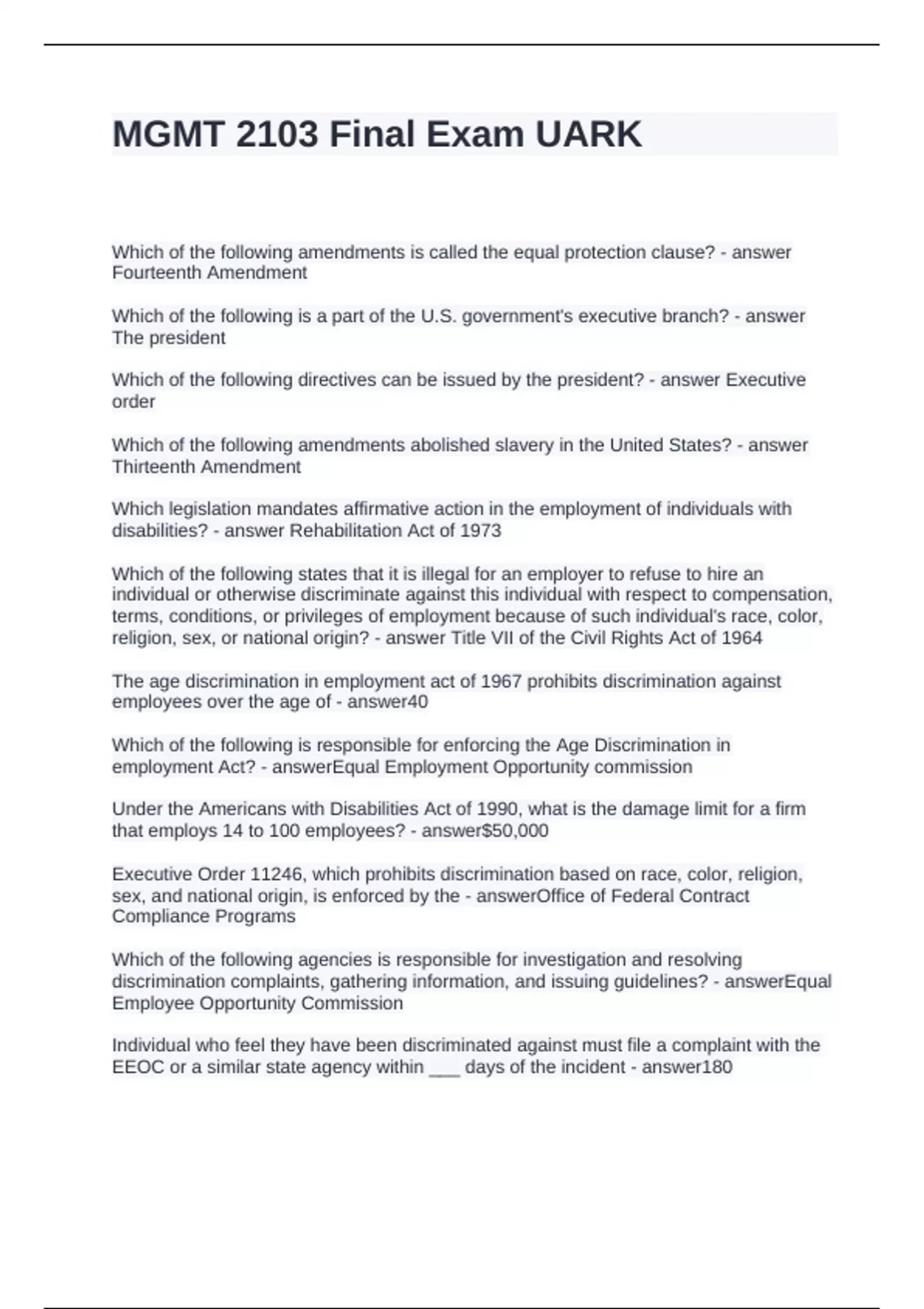 MGMT 2103 Final Exam UARK