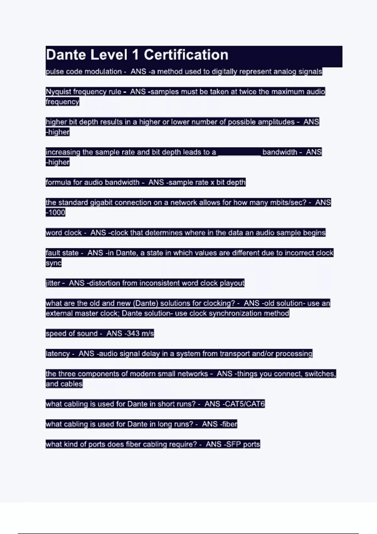 Dante Level 1 Certification.