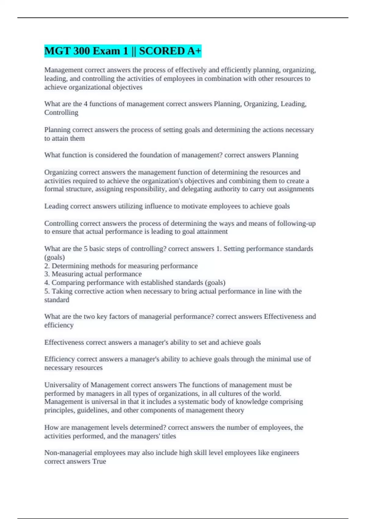 MGT 300 Exam 1 || SCORED A+