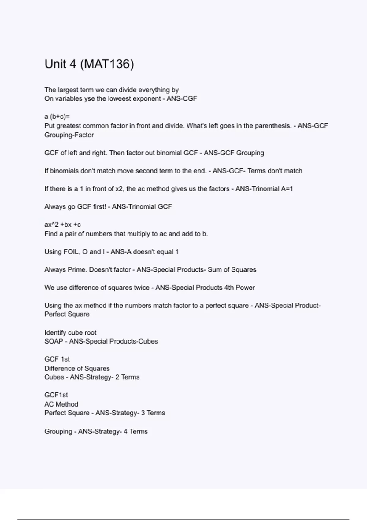 GCF of left and right. Then factor out binomial GCF - ANS-GCF Grouping