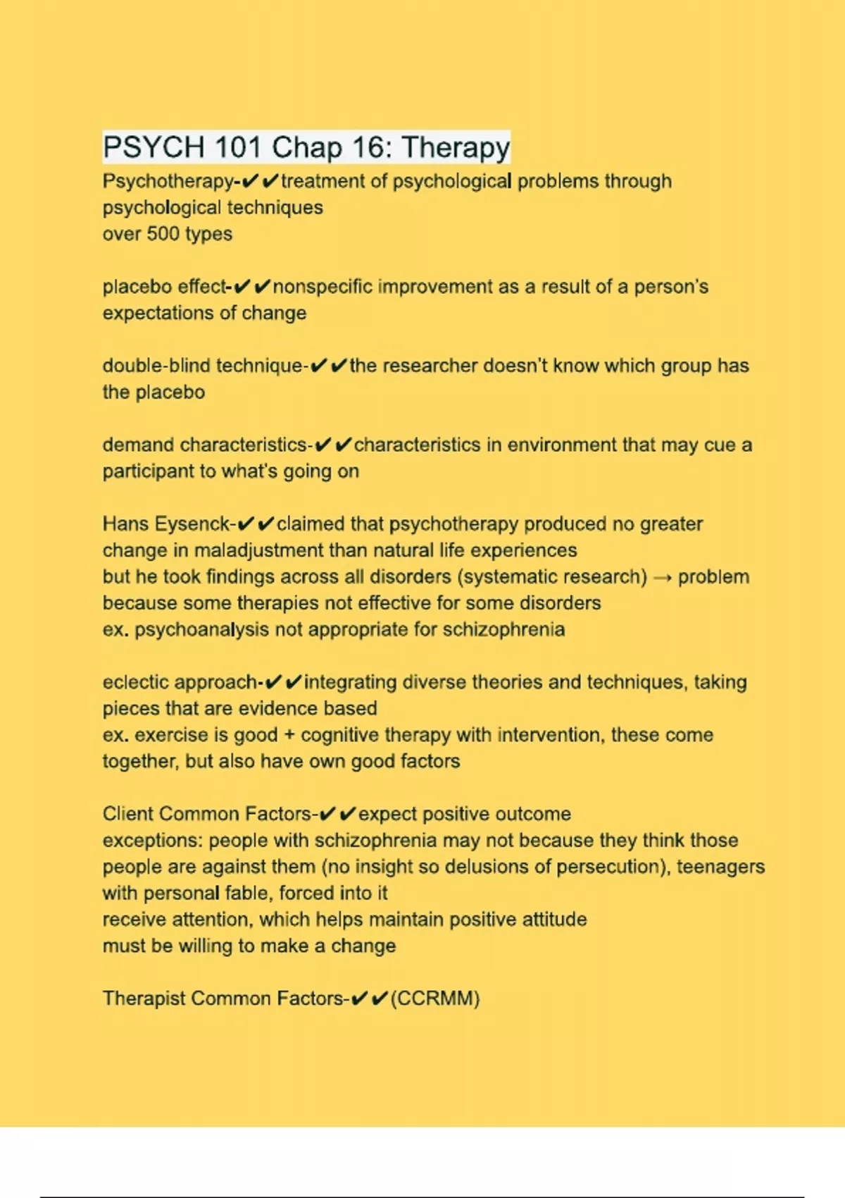 PSYCH 101 Chap 16 Therapy. Questions & 100% Verified Correct Answers with complete solutions (Latest update