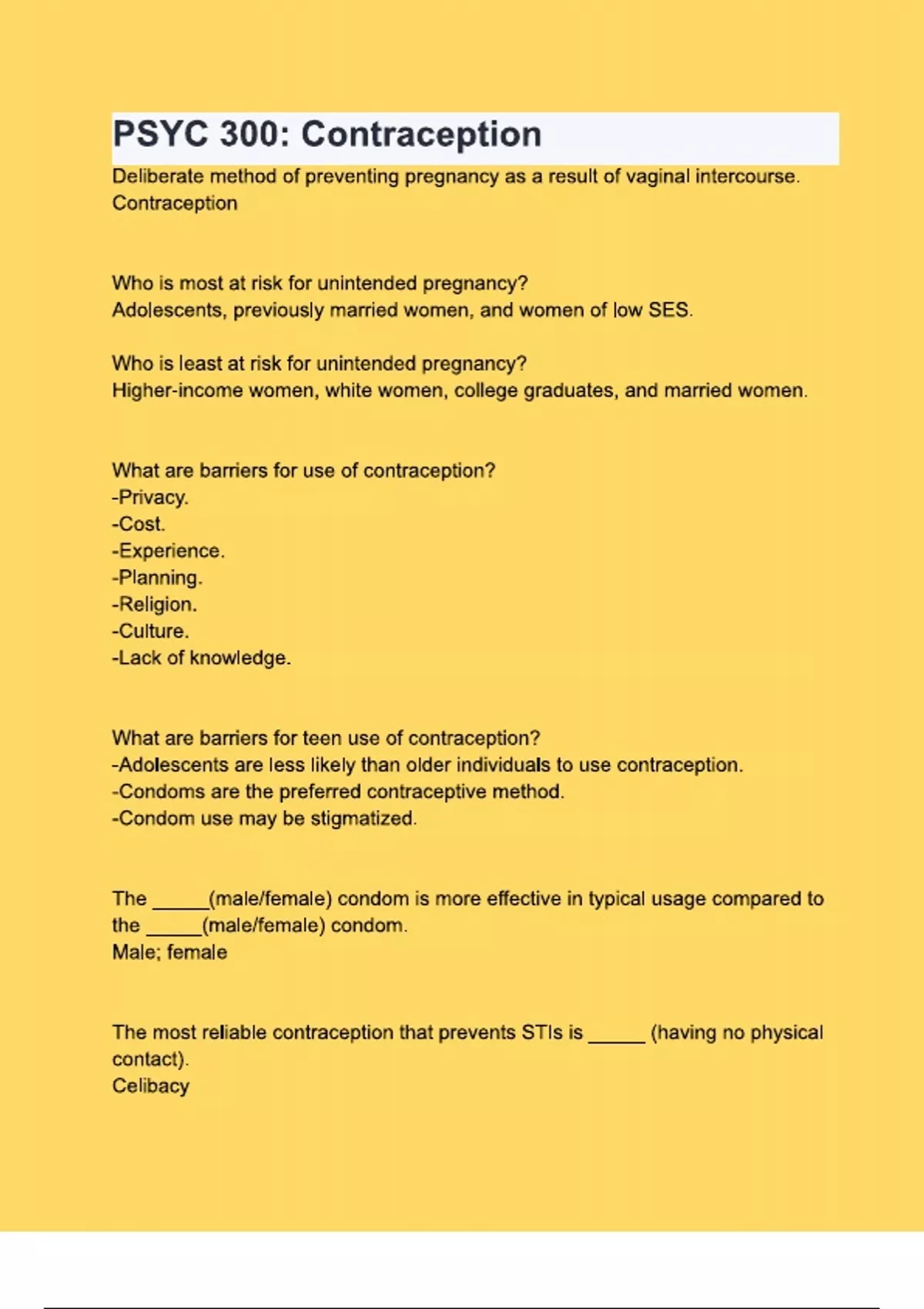 PSYC 300 Contraception. Questions & 100% Verified Correct Answers with complete solutions (Latest update