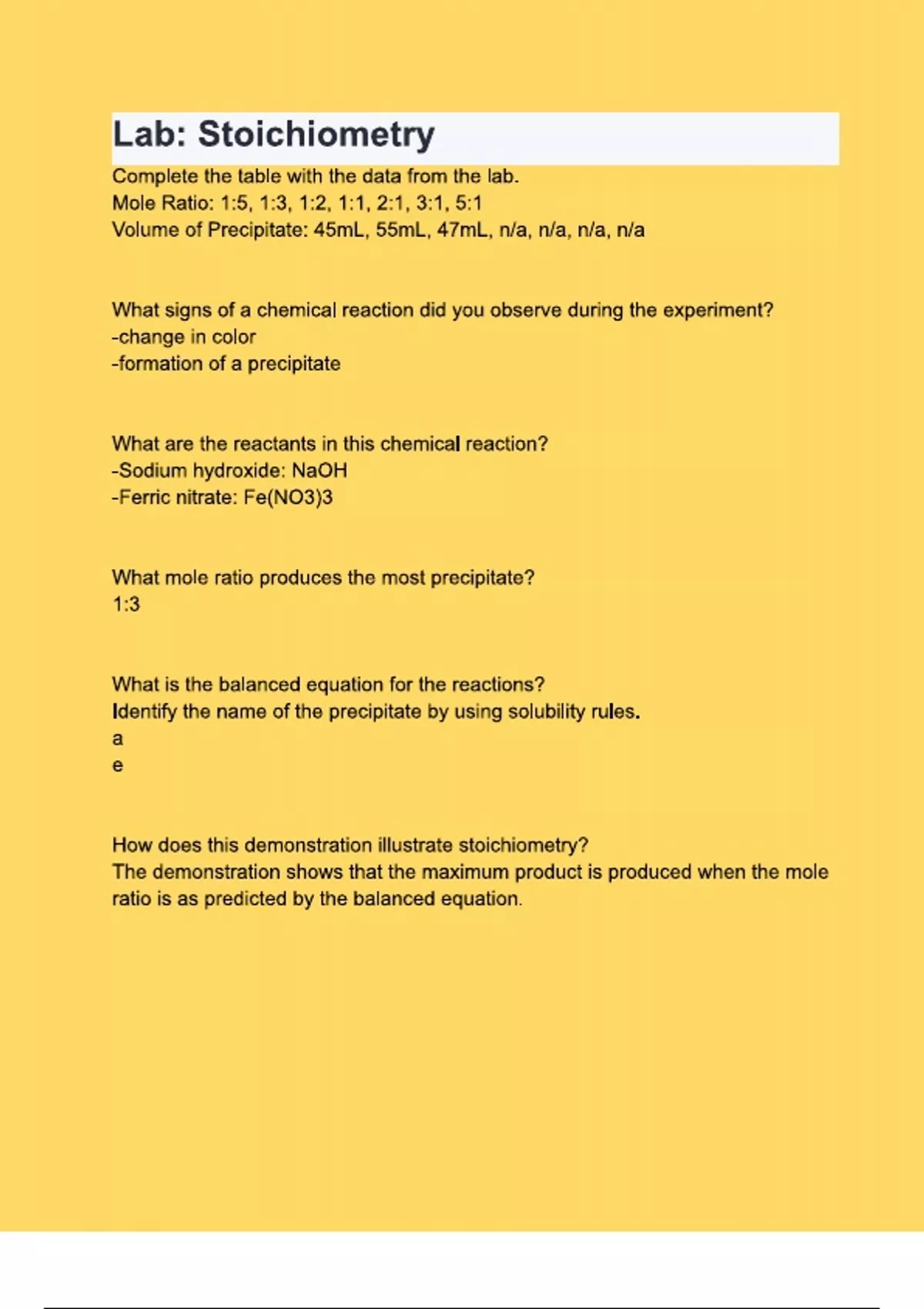 Exam of 1 pages for the course TEST17 at TEST17 (Lab Stoichiometry.)