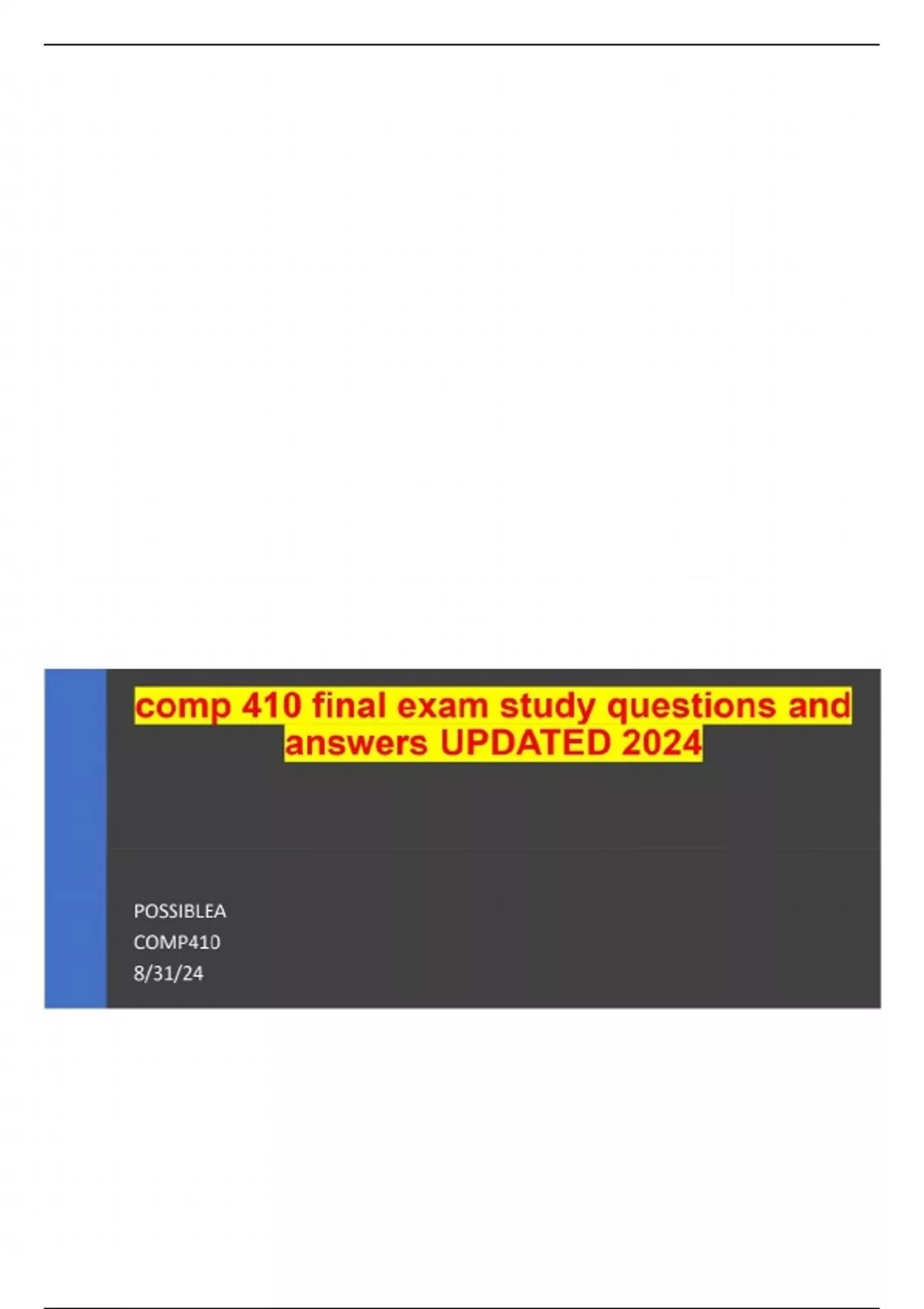 comp 410 final exam study questions and answers UPDATED 2024