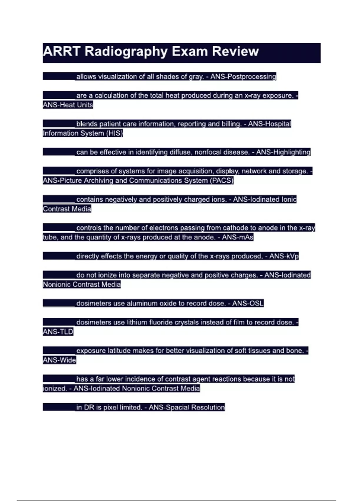 ARRT Radiography Exam Review.