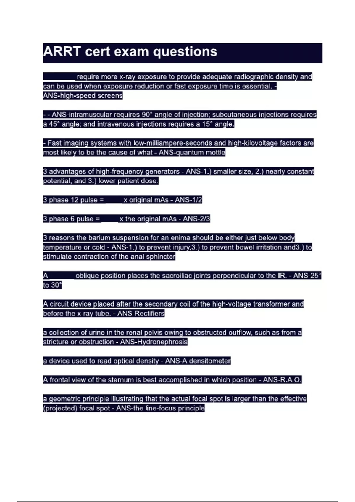 ARRT cert exam questions.