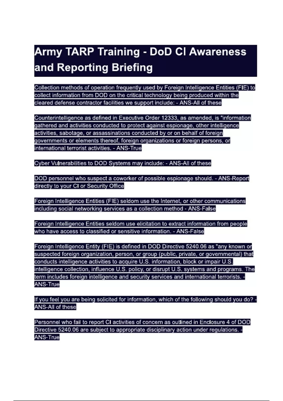 army tarp training dod ci awareness and reportin