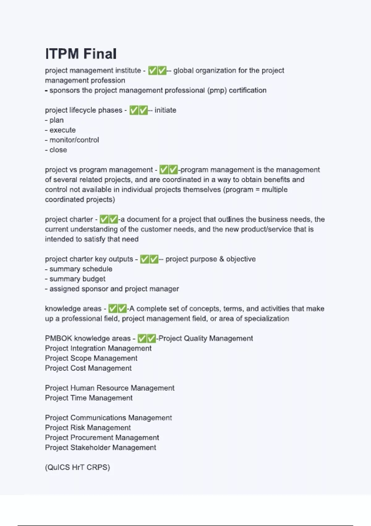 ITPM Final ITPM Final Questions with verified correct answers - complete solution 2024