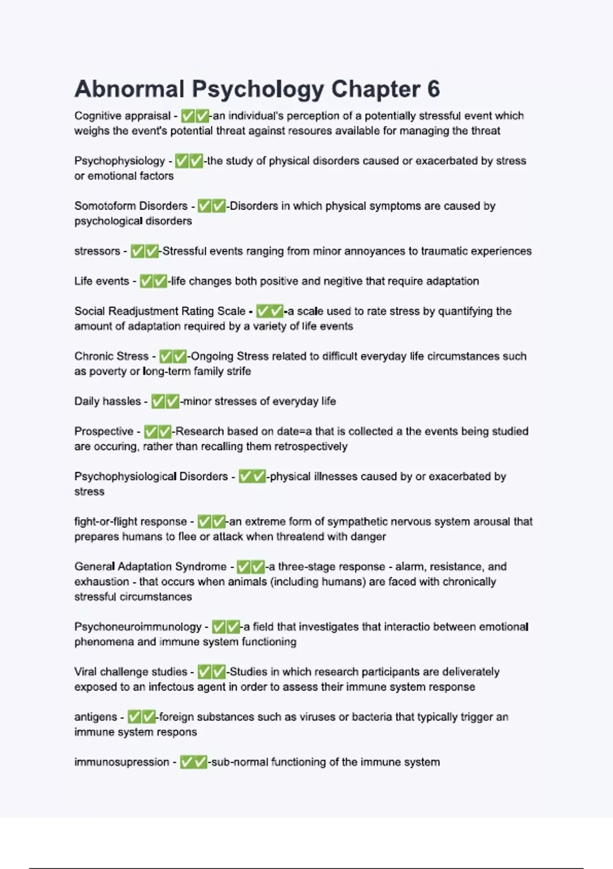 Abnormal Psychology Chapter 6 Questions with Explanations of Answers.