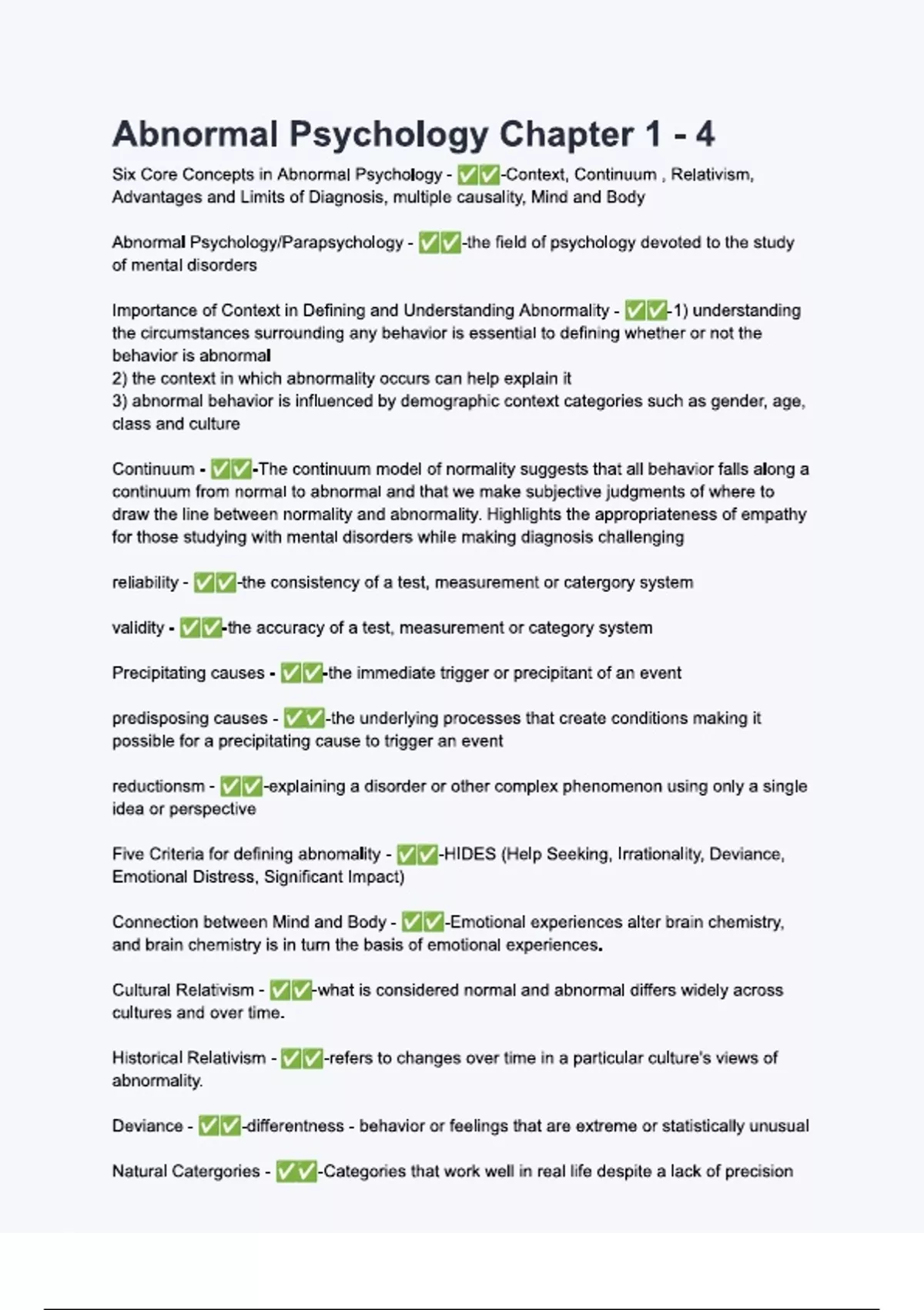 abnormal psychology chapter1 4 questions with expl