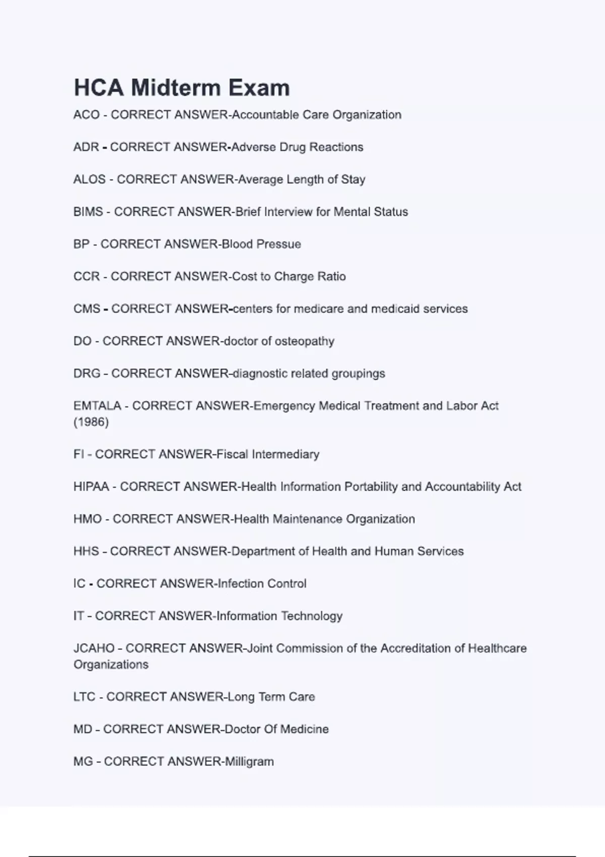 HCA Midterm Exam with verified correct answers - complete solution 2024.